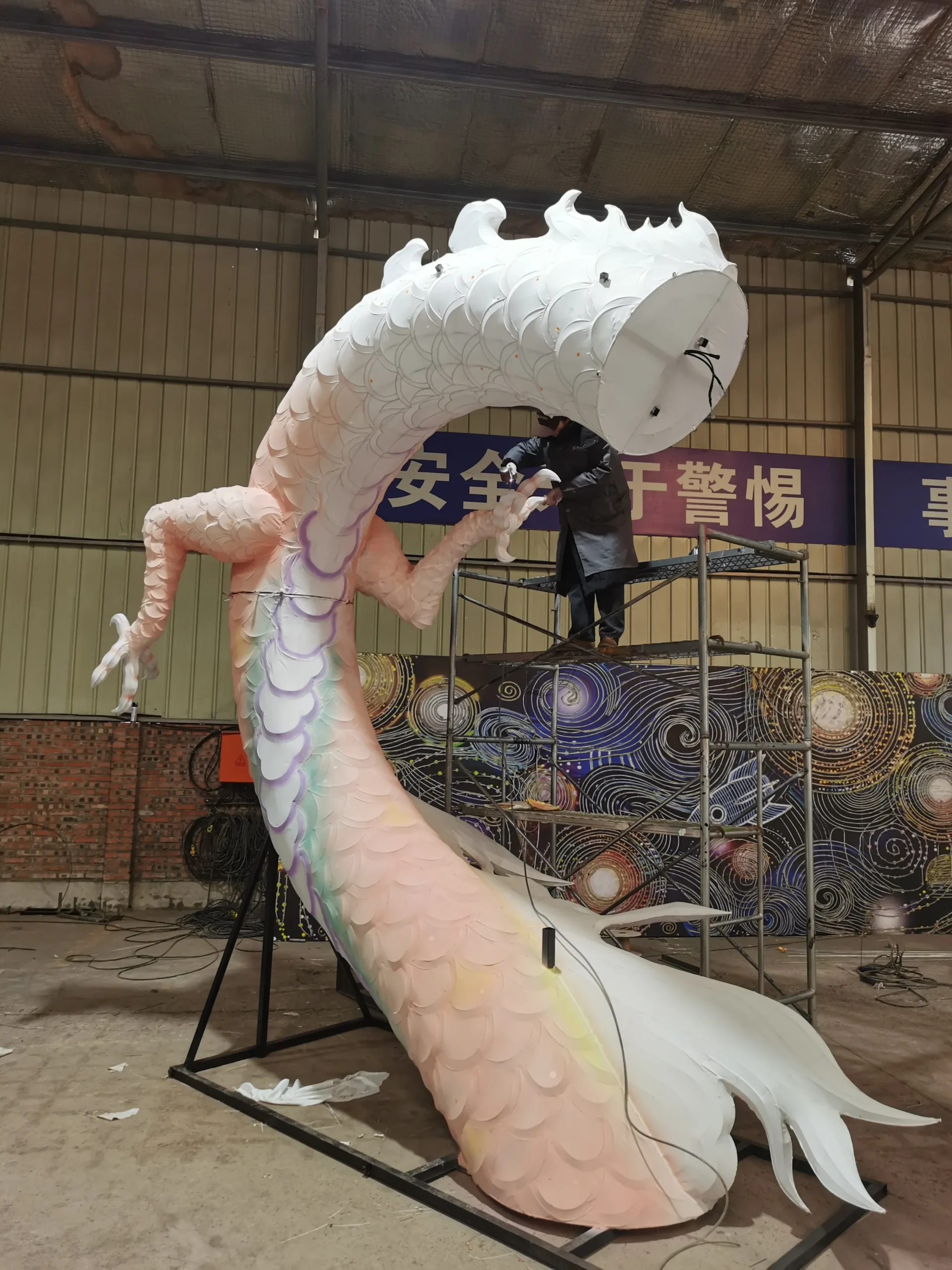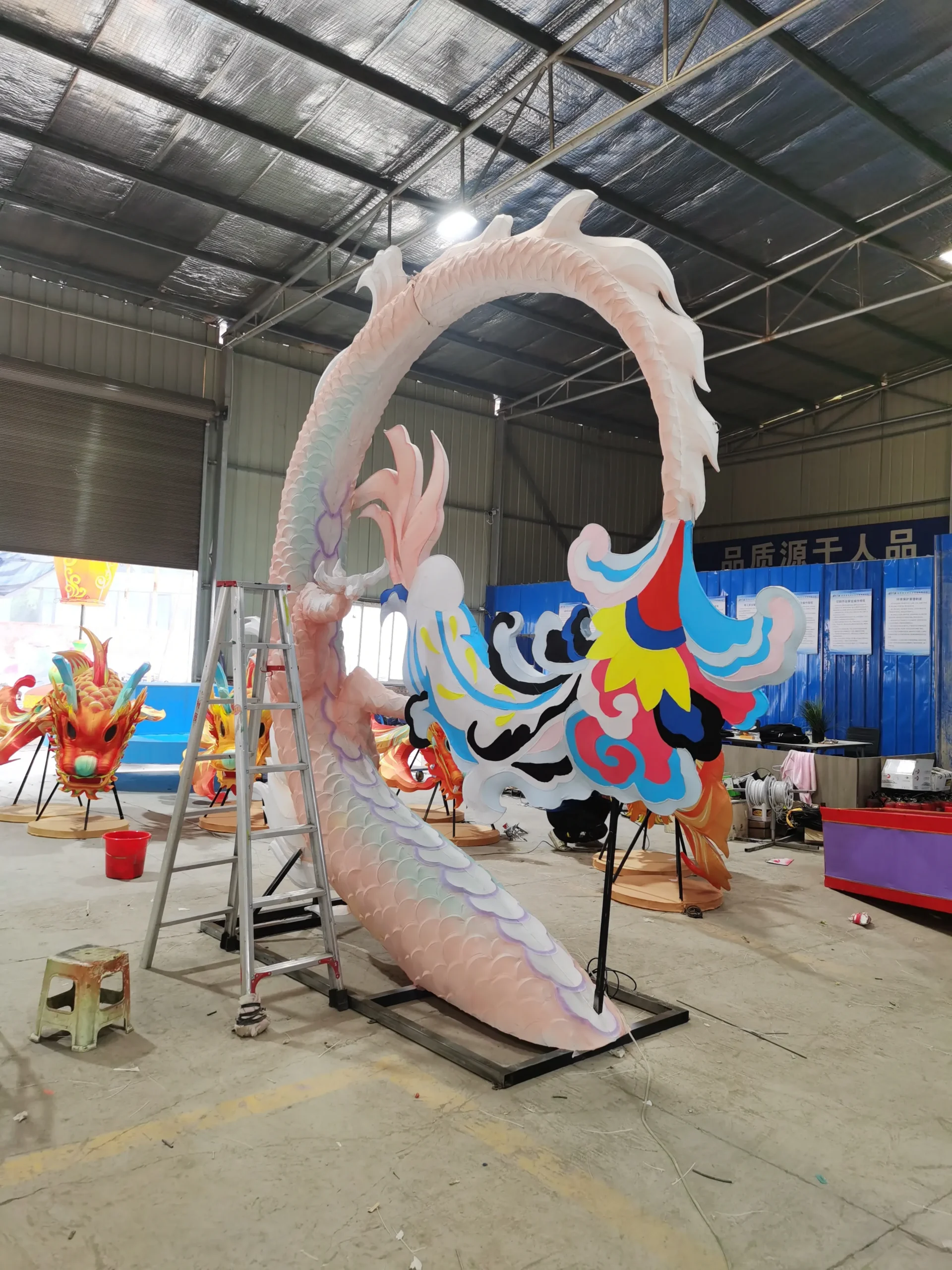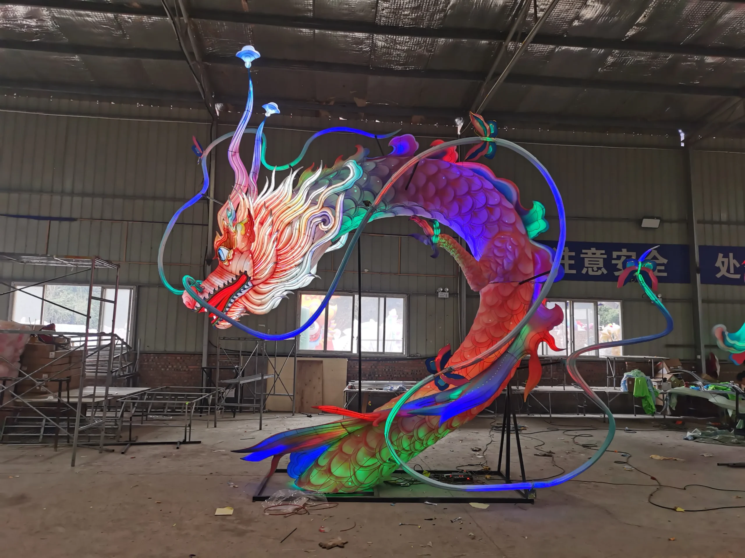 Immerse your audience in a breathtaking scene where a dragon emerges from the water, its glowing body winding through the surface, tail curling, and scales shimmering under the night sky. Our colorful dragon lanterns are more than decorative—they are dynamic storytelling sculptures that bring traditional myths and modern creativity to life.