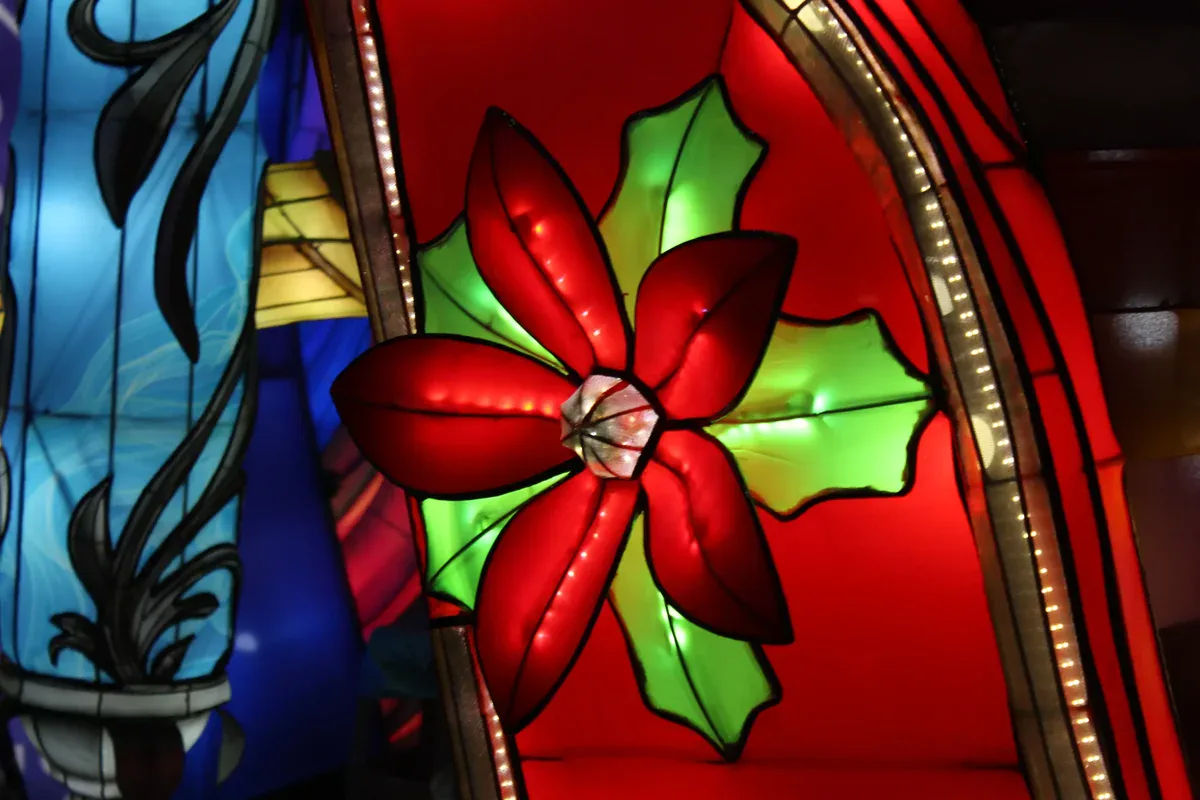 Sleigh Lanterns are iconic festival lighting for holiday celebrations. It features a scarlet main body with ornate gilded carved borders, its curved silhouette replicating Santa’s classic sleigh—tied to Christmas nostalgia. The side has a 3D poinsettia (a timeless Christmas symbol), while the glossy material boosts elegance under light. Designed around Christmas culture, it revives fairy-tale sleigh imagery, weaving classic festive symbols to evoke warm nostalgia. As core festival lighting, it houses soft warm light: at night, it emits gentle, glare-free glow, crafting a dreamy holiday ambiance.Ideal for Christmas markets (as a photo focal point), hotel parties, or home decor, this lantern enriches festival lighting layers. It anchors visual attention and infuses strong festive allure into Christmas/winter events, serving as a versatile decor staple.