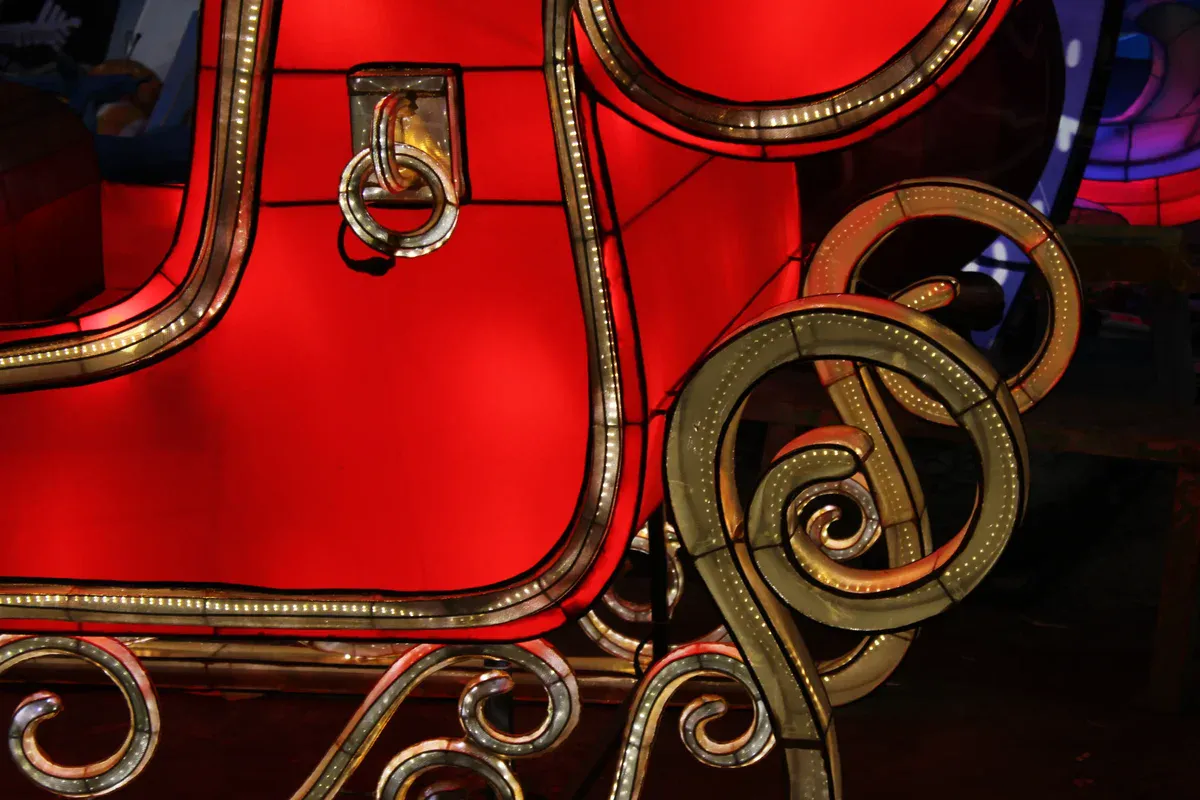 Recreates Santa’s sleigh in a charming decorative form, bringing familiar Christmas imagery into real-world holiday events.
