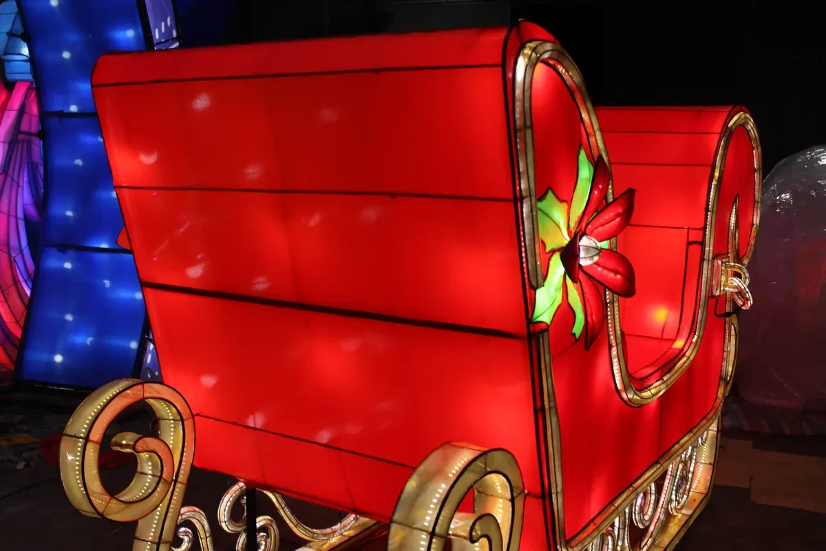 Sleigh lanterns bring classic Christmas charm to life with glowing red-gold design, soft warm lights, and beautifully crafted festive details. These decorative sleigh lanterns add a cozy, magical holiday lighting effect to any Christmas event—from theme parks to malls, markets, hotels, and family homes.