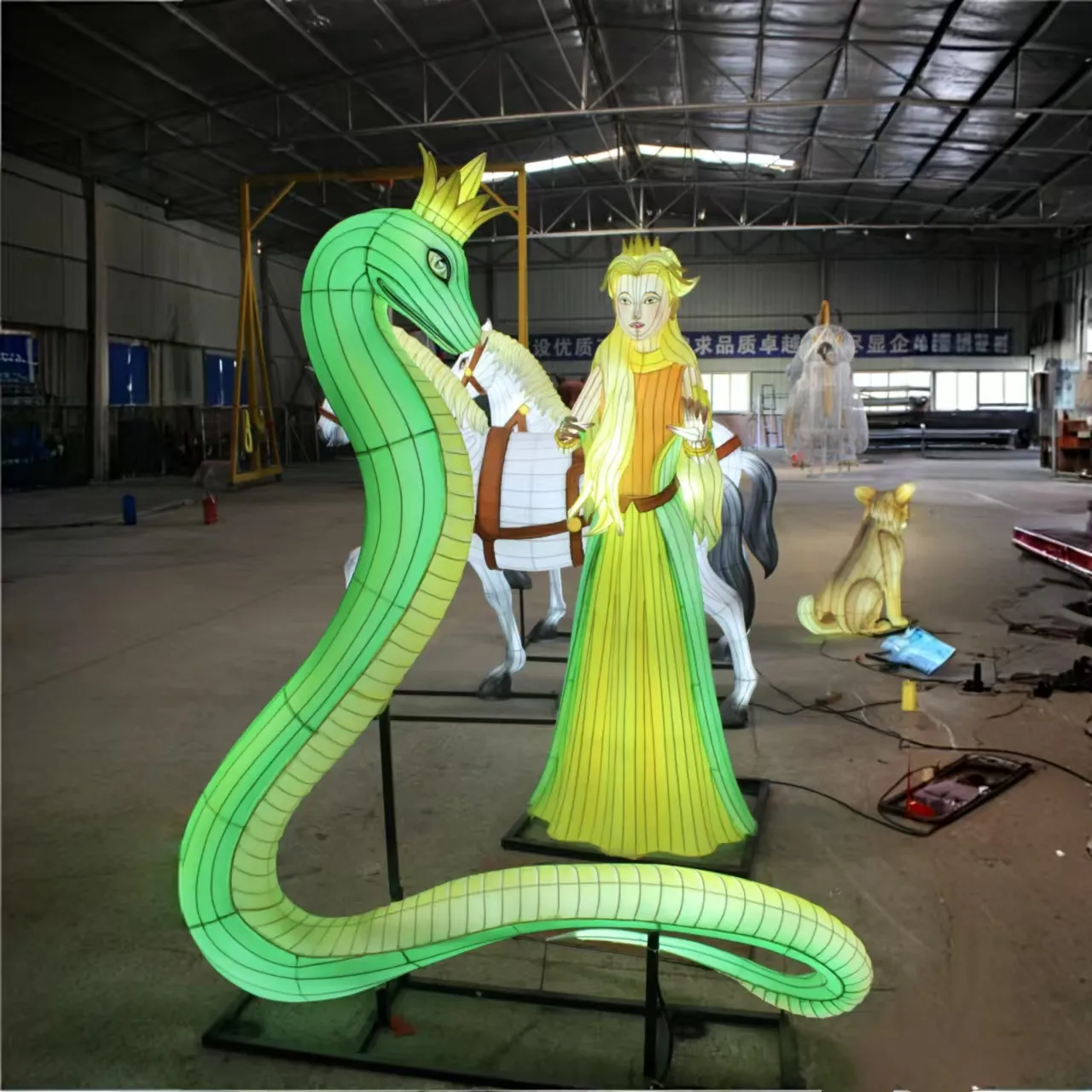 Through the artistry of lanterns, we turn folklore into embodied illuminated lanterns that immerse audiences in myth and romance. From the flowing gown of the Queen, shaped with metal wire and covering with painted silk, to the serpent king installed with luminous crown, every detail invites children and adults into a world where fairy tales shining.