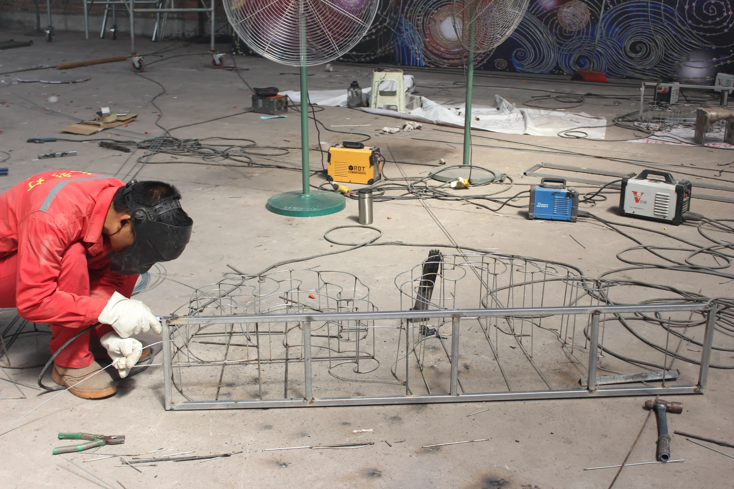Steel frame, waterproof fabric, LED lights